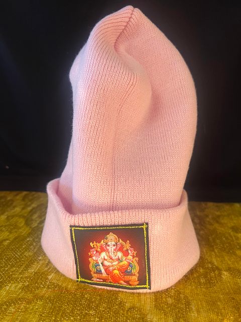 Sold outGanesha Patch on Pink Cuffed Beani